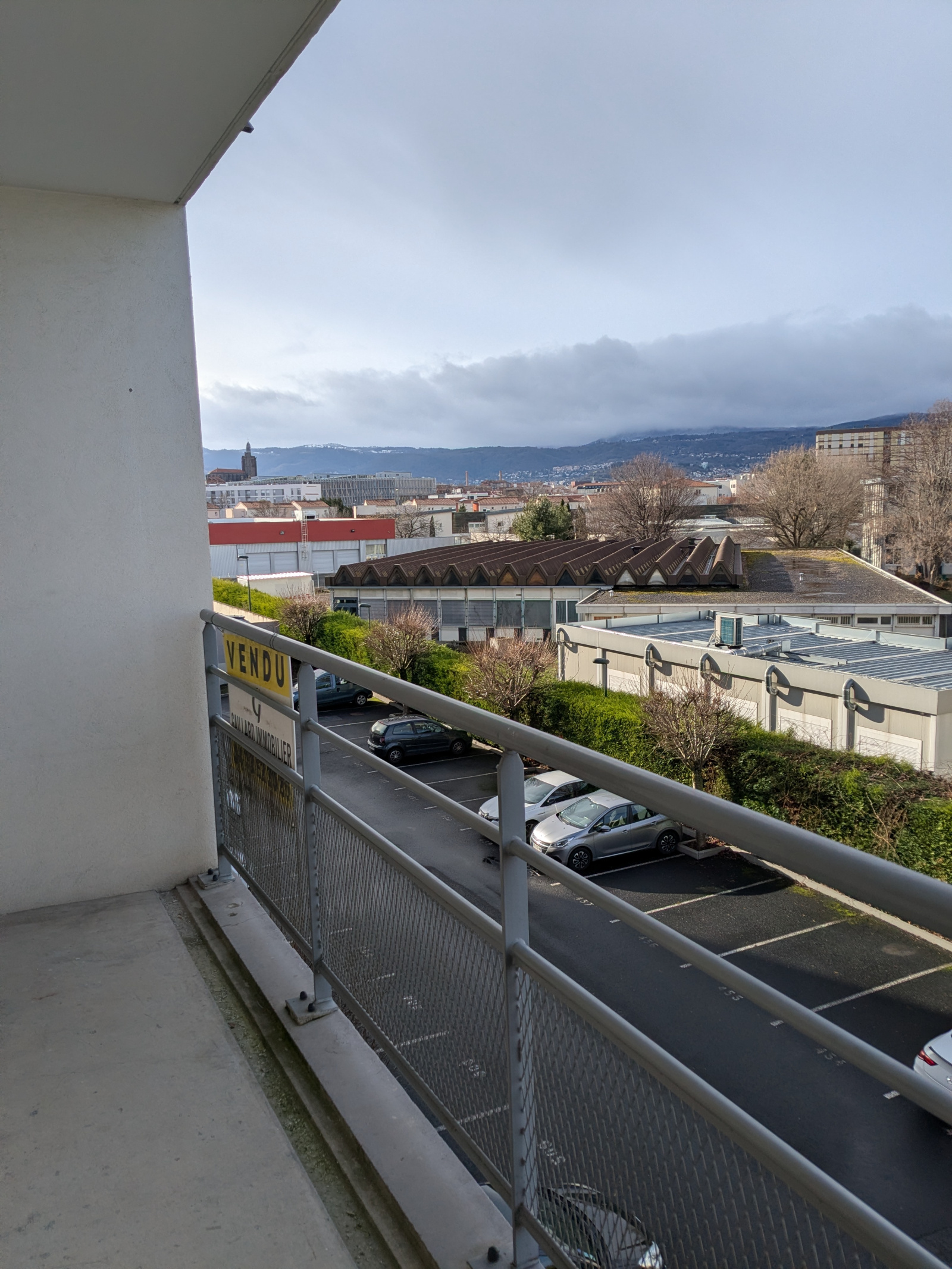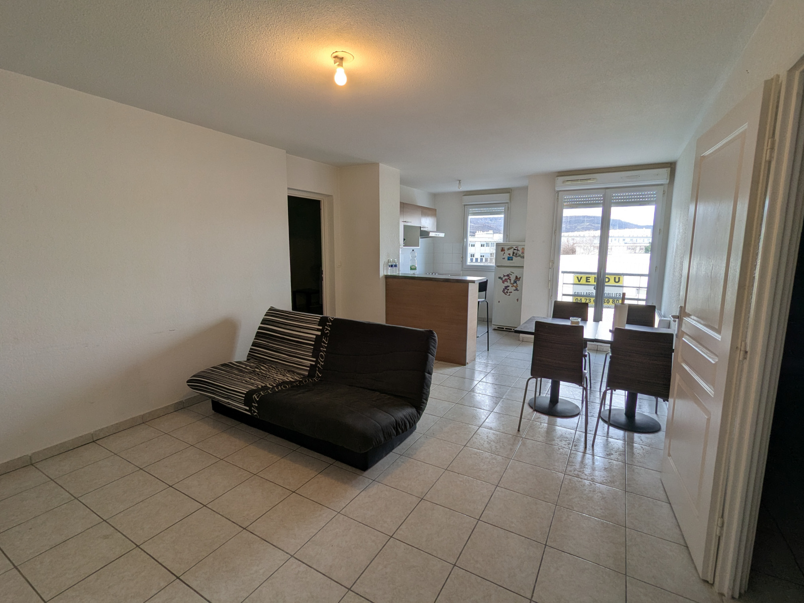 Pièce de vie ouverte sur espace cuisine avec accès à un balcon, dégagement, chambre avec placard, salle d'eau, toilette séparée et une chambre avec placard