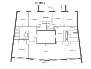 Vaste hall d'entrée, pièce de vie de 36 m², 4 chambres, bureau, lingerie, une salle de bains, possibiité de créer une deuxième salle d'eau.