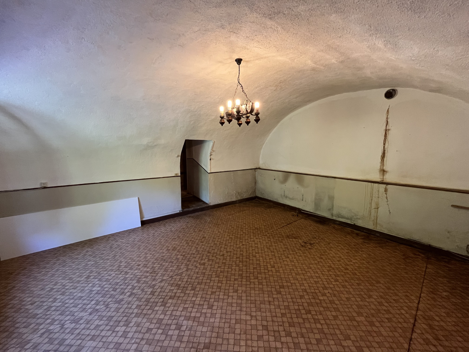 en l'état, au RDC ,elle offre une cuisine, une cave, un salon vouté,