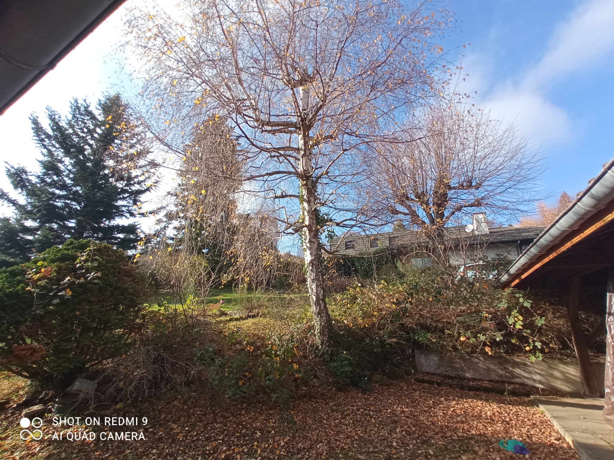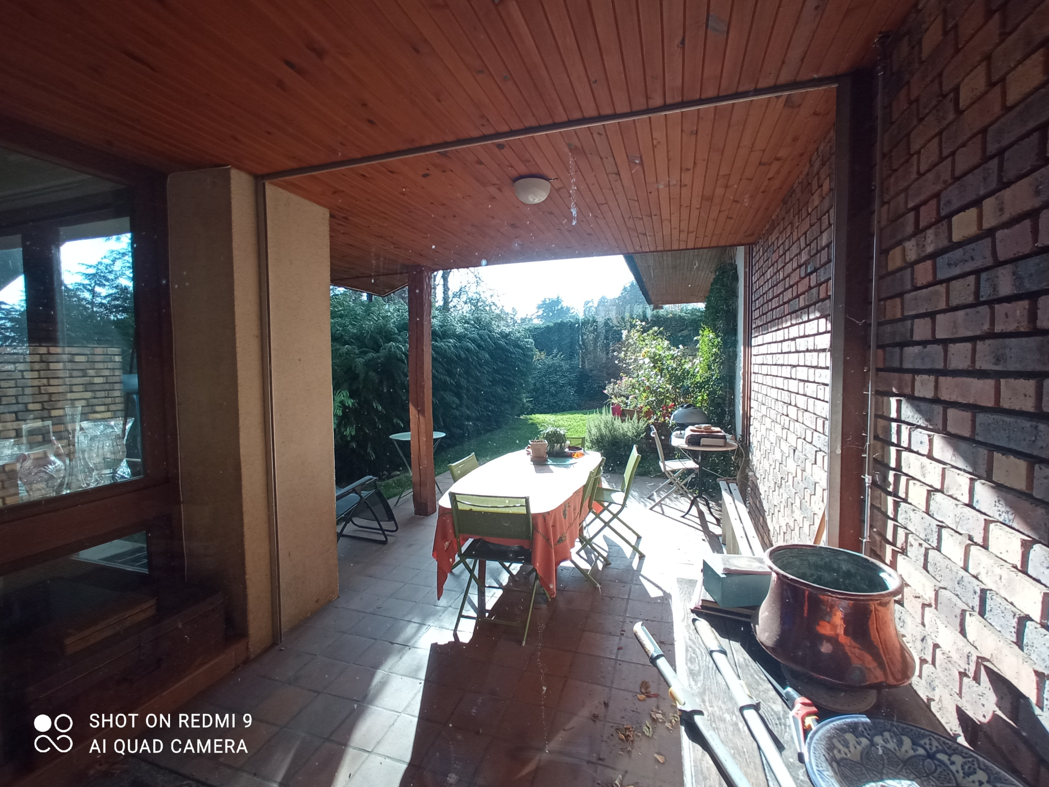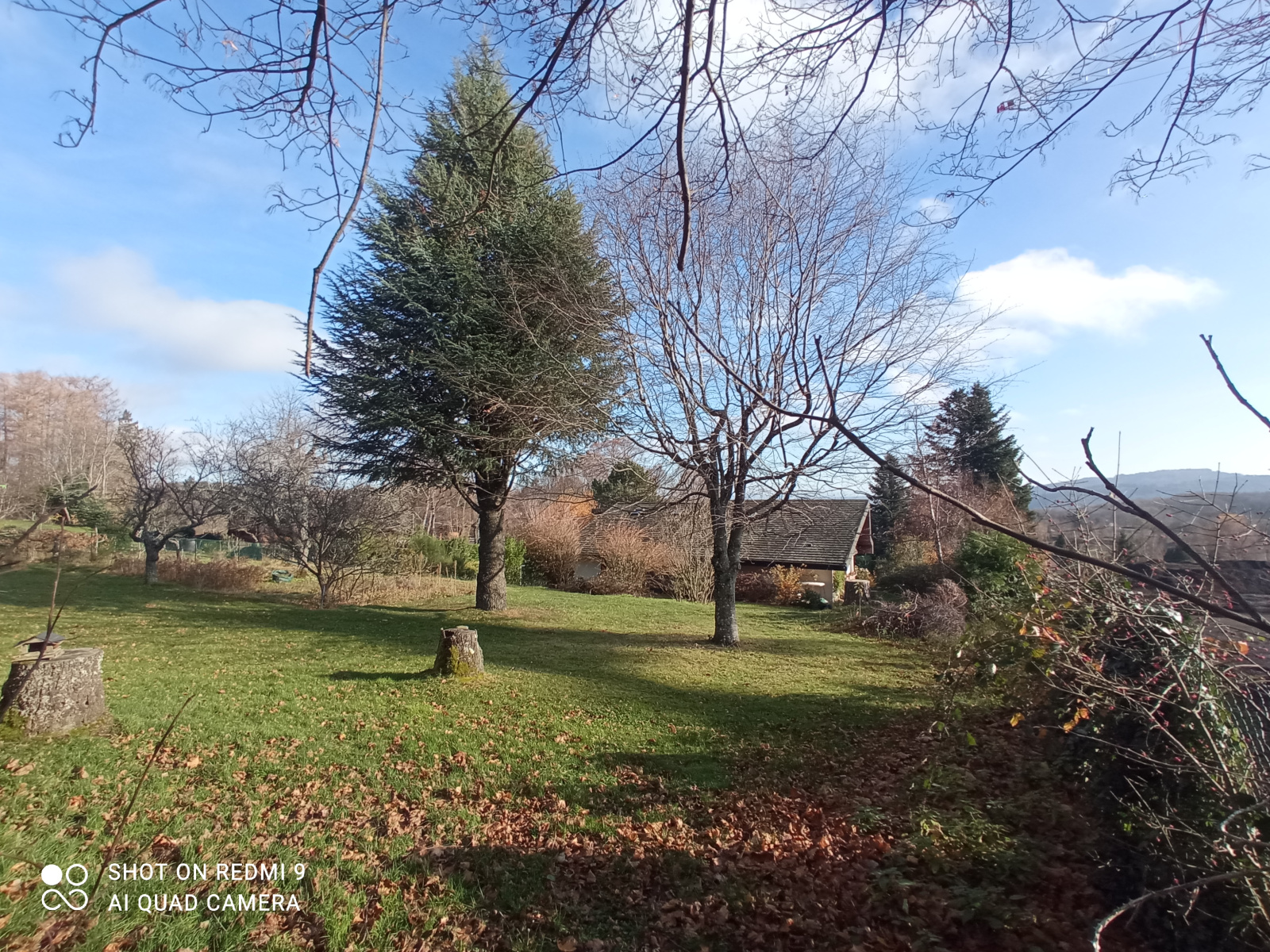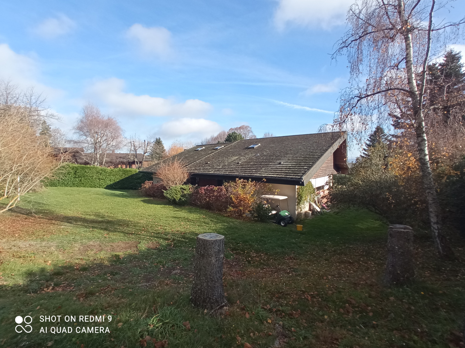 Le parc pour une surface de 3800m² , avec un garage pour plusieurs voitures , et un grand préau .