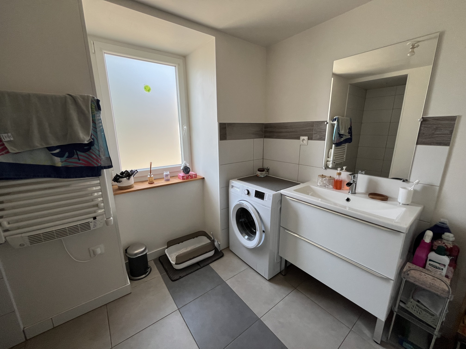 La partie rénovée développe 65,55 m² habitable. Elle se compose d’une pièce de vie lumineuse avec cuisine équipée ouverte, deux chambres, salle d’eau moderne et WC séparé. Actuellement louée 560 € + 30 € de charges mensuelles, cette partie assure un bon rendement locatif. L’alliance parfaite entre rendement immédiat et perspectives d’aménagement sur mesure.